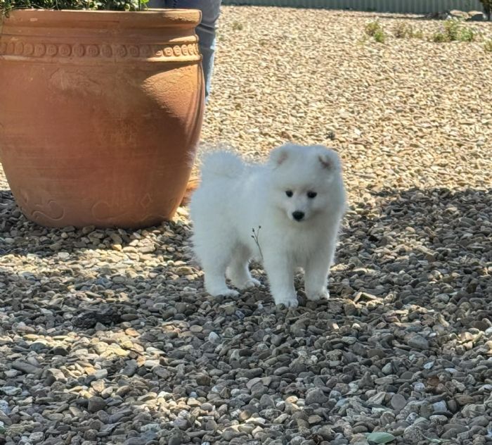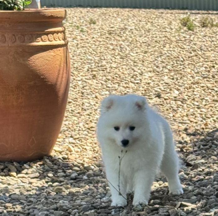 Japanese Spitz Puppie For Sale All pet puppies come desexed, vaccinated, micro chipped with limit registration papers. Also a puppy pack containing food, toys, chews and treats, a harness and plenty of instructions on how to look after your puppy. I encourage visits if possible once pups turn 6 weeks of age. New owners get to choose the name of their puppy for all the paperwork. I do all the hard work, you get to enjoy your puppy. Urgent Update I have one girl ready to go now. She is pictured below. Contact me at [email protected] for details